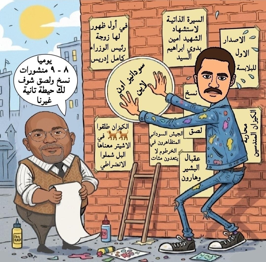 يا سلام عارف ابداع وتوعية تمام والله كان يرفعو ليك اكشناتك دي، مع كاكتيرات عمر دفع الله فوق، في الصفحة الاوليً بدل تكون حبيسة. داخل، البوست خلي، العالم تشوف سودانيز، اون لاين وجنودها المجهولين بوست حمدوك اوسكار بوست السمكرة جميل بس كان تربط الجنوب، من جديد، بصواميل لانه فكرتي، سمكرة الجنوب، مع الشمال، من جديد وارمي قدام بس جهد عظيم والله افضح امعط، امسح امسح والعبار الفار.... بريمة انتهي، خلاس